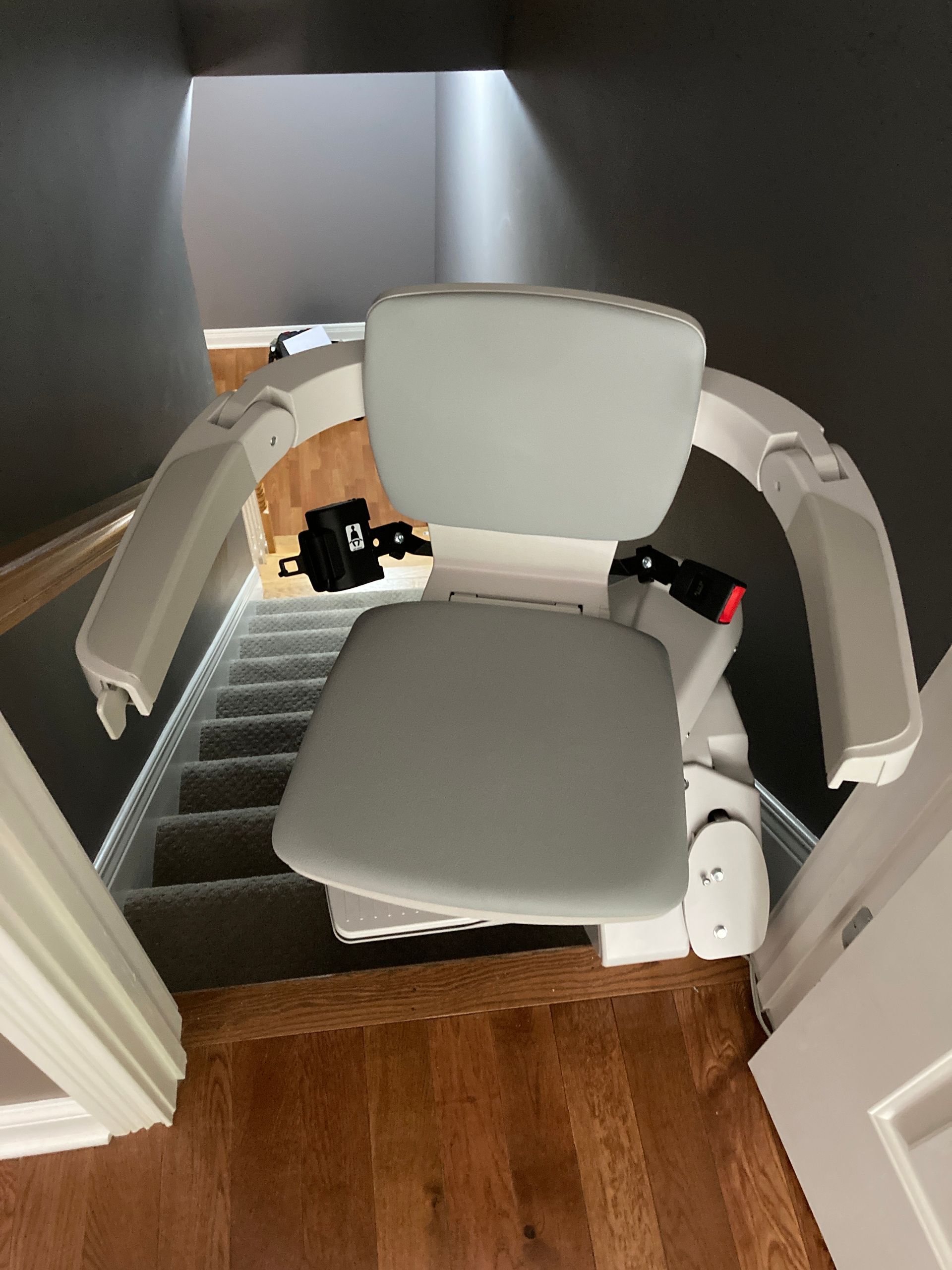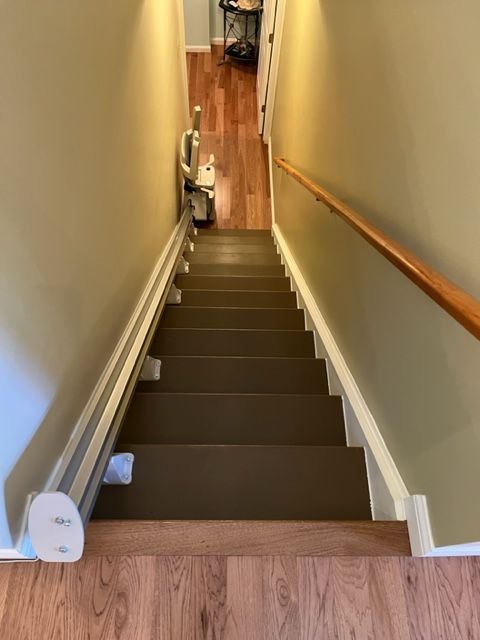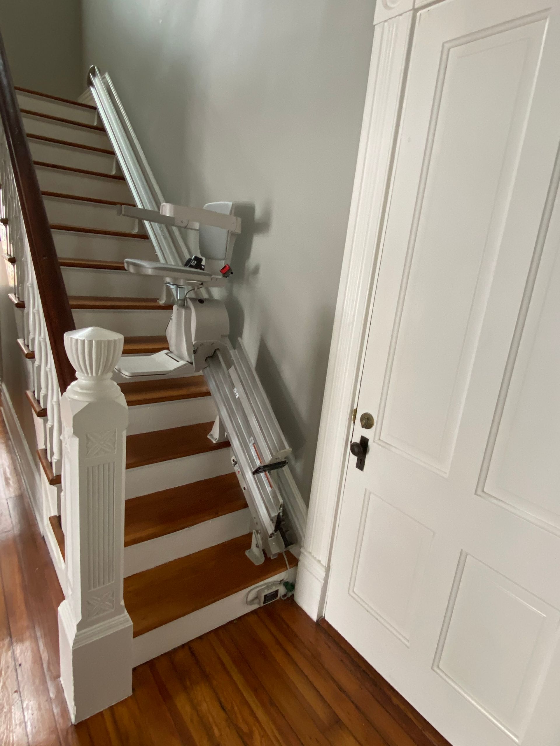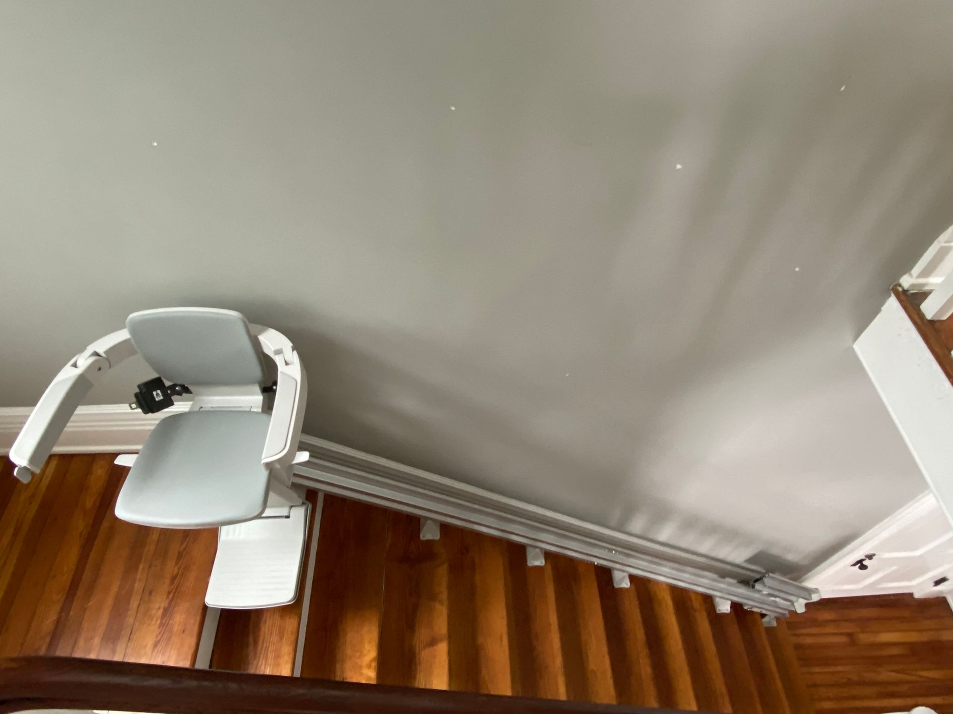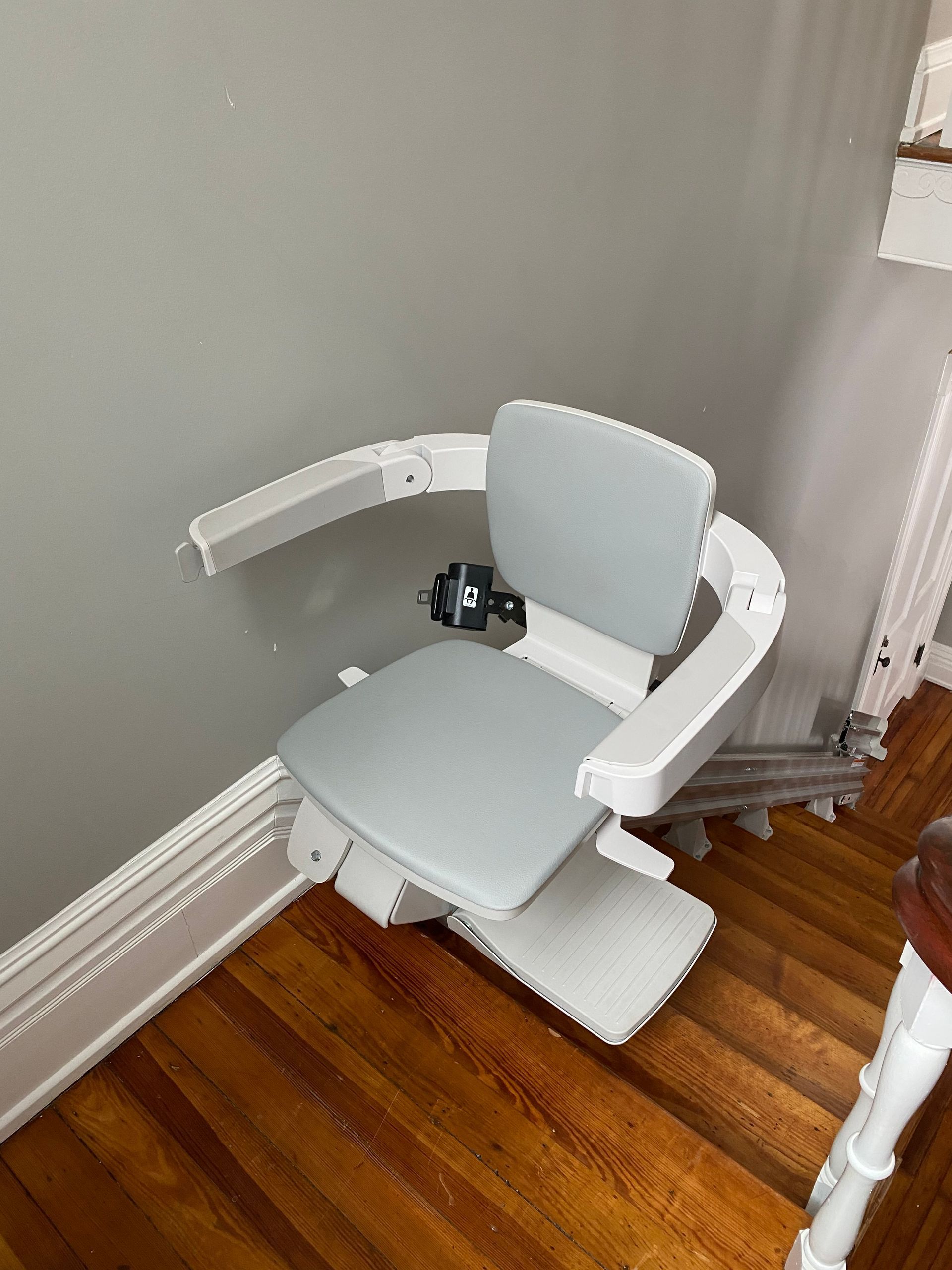- Flip-up folding rail option: if there's a door, obstacle or hallway at the end of your stair lift rail, simply flip up the bottom