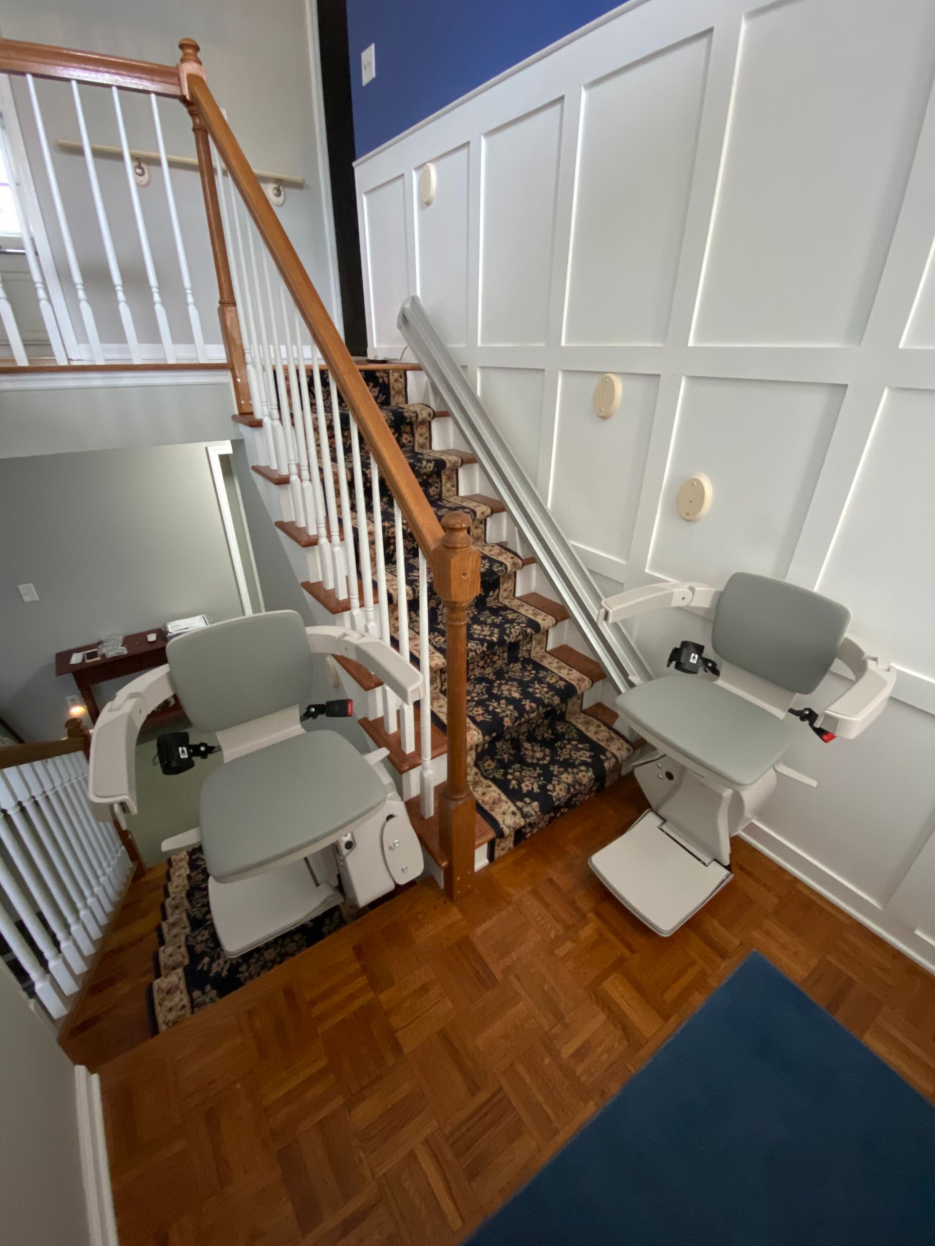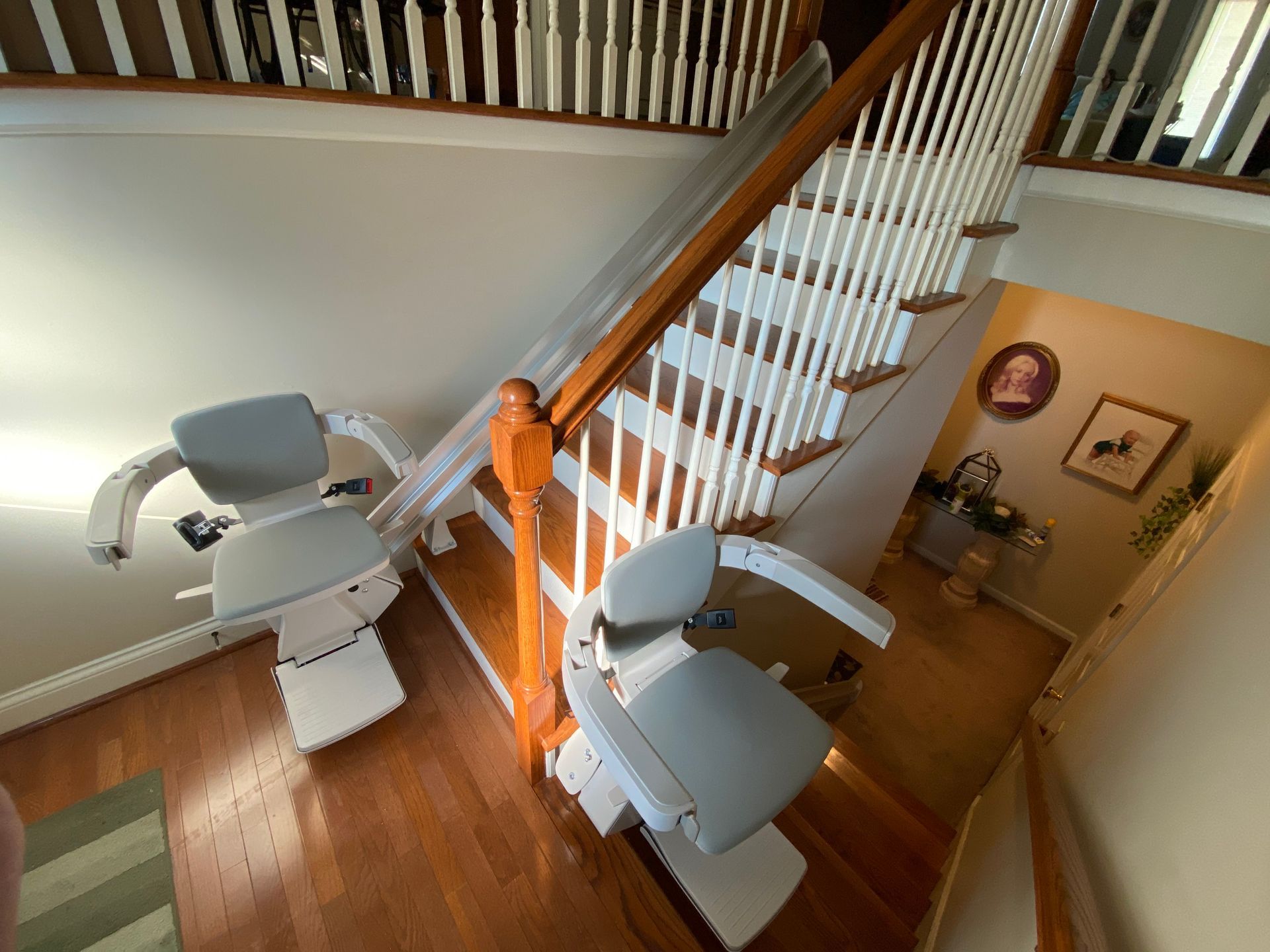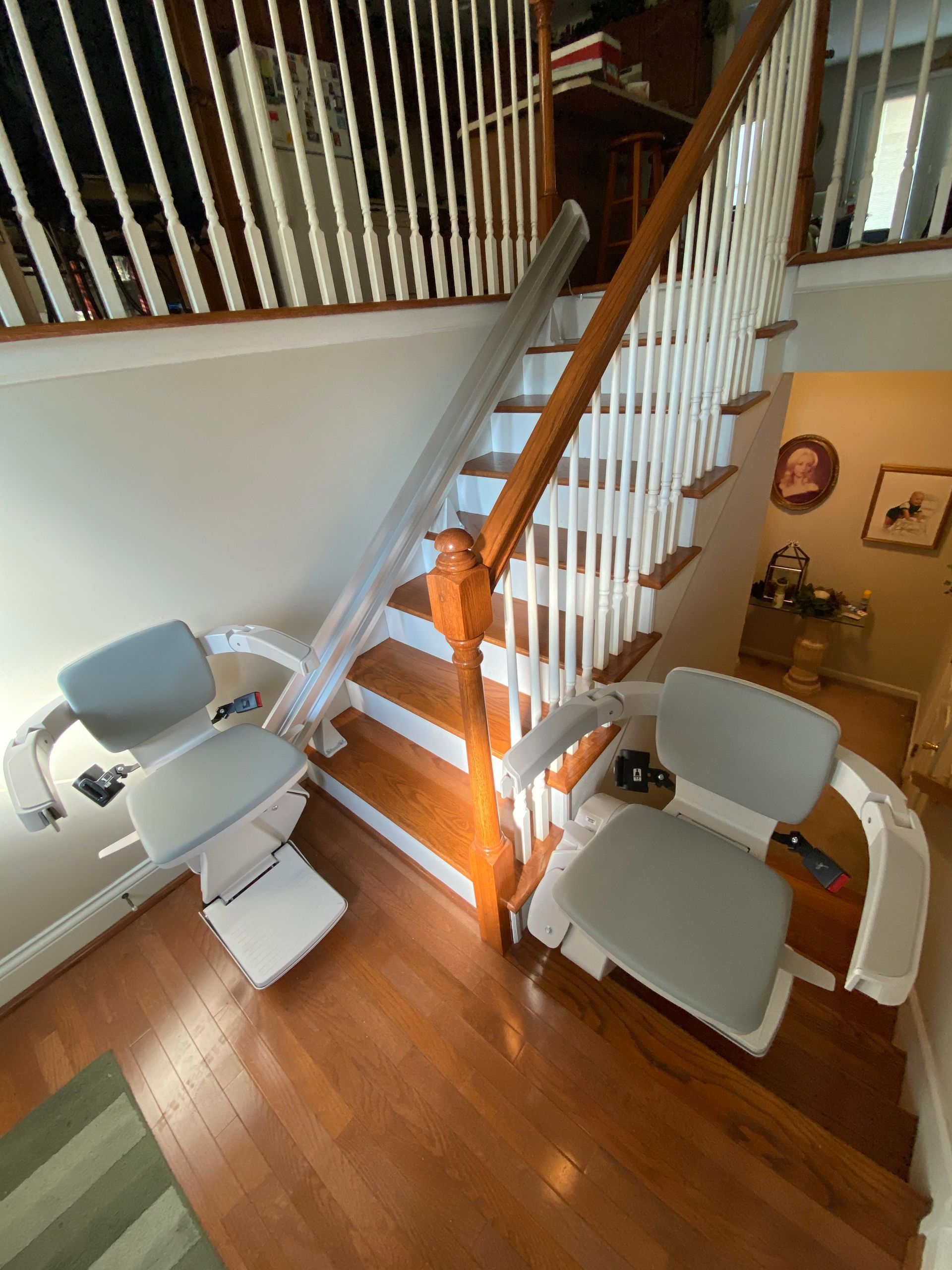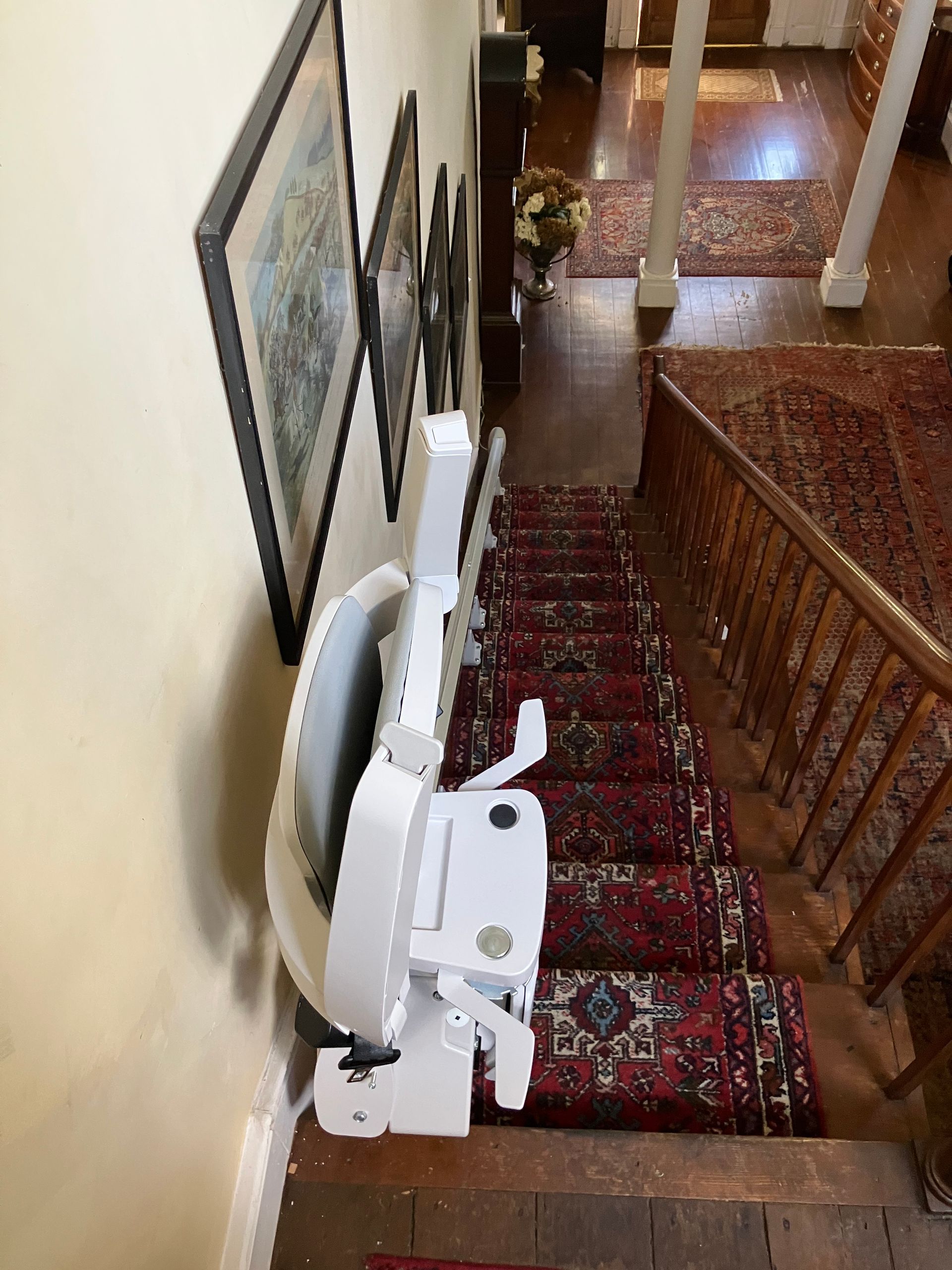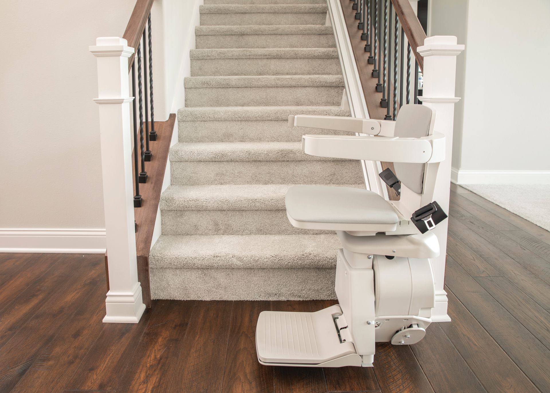 - Flip-up folding rail option: if there's a door, obstacle or hallway at the end of your stair lift rail, simply flip up the bottom