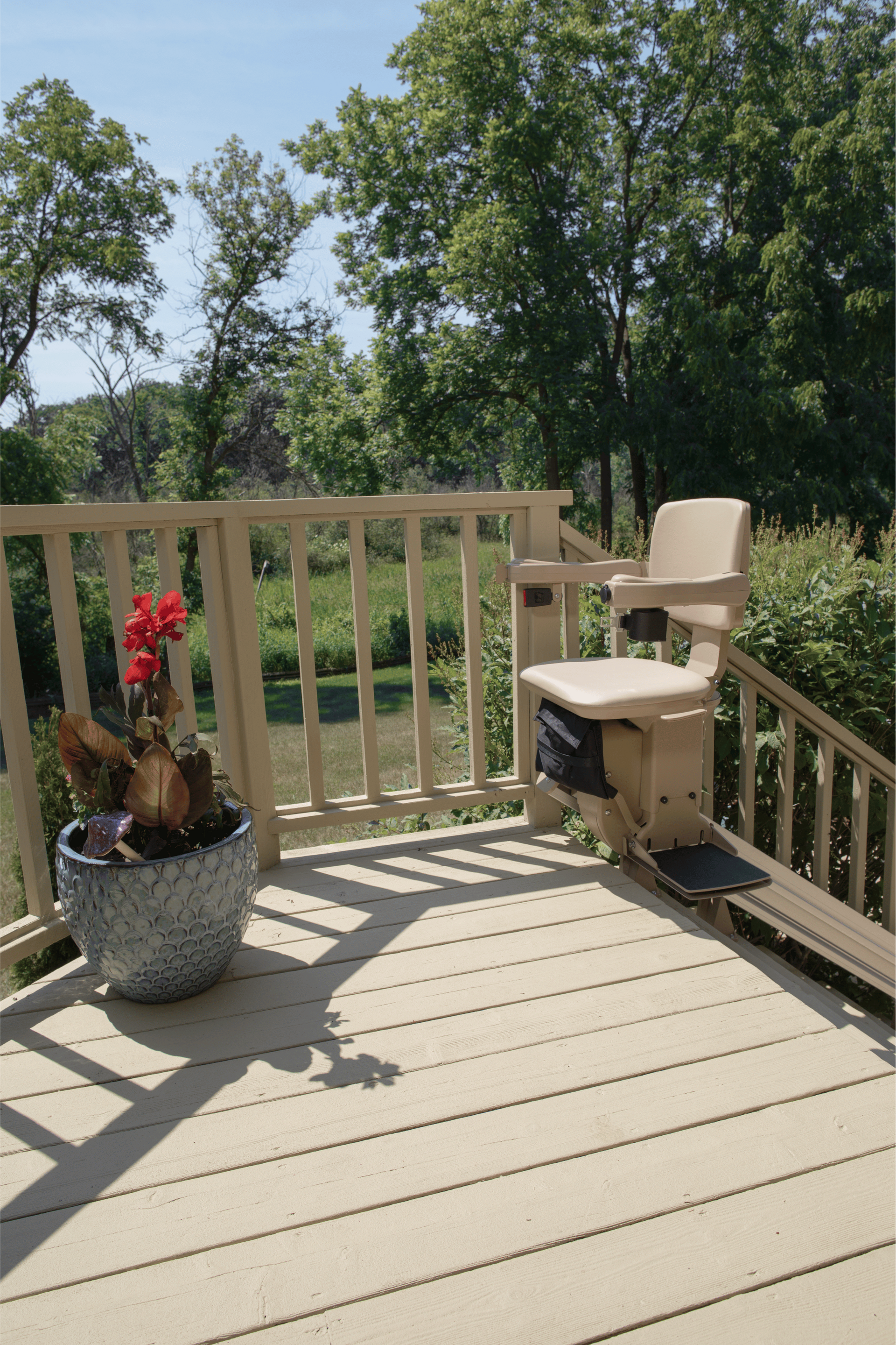 - The Outdoor Elite model SRE-2010E, is specifically designed for exterior use, providing you with the same quality, comfort and convenience available with Bruno's complete line of straight rail and curved rail stairlifts.
