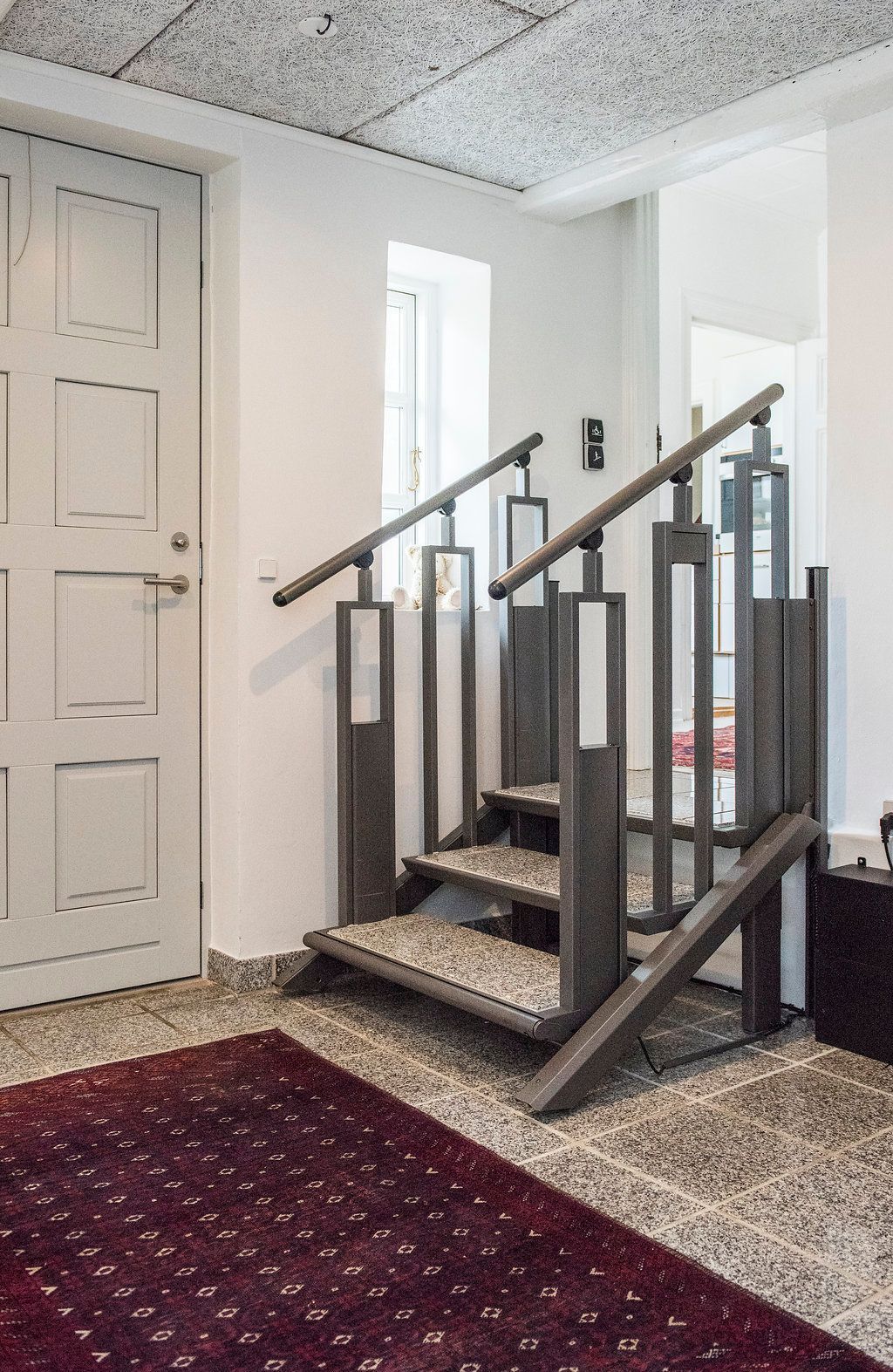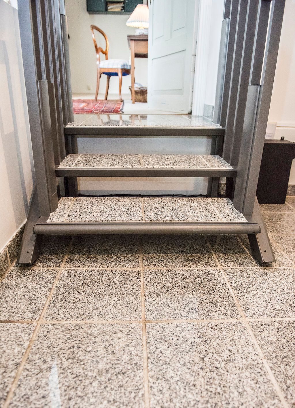 The FlexStep stairlift is a 2-in-1 solution that combines stairs and a wheelchair lift in even the smallest spaces. It can be easily converted from a flight of stairs into a platform lift with the push of a button, making it ideal for those who use wheelchairs or have difficulty walking. FlexStep can be customized to match your existing decor at home or in a commercial application with no pit or preparation needed. The stair lift comes in a variety of finishes, colors, and installation configurations.
