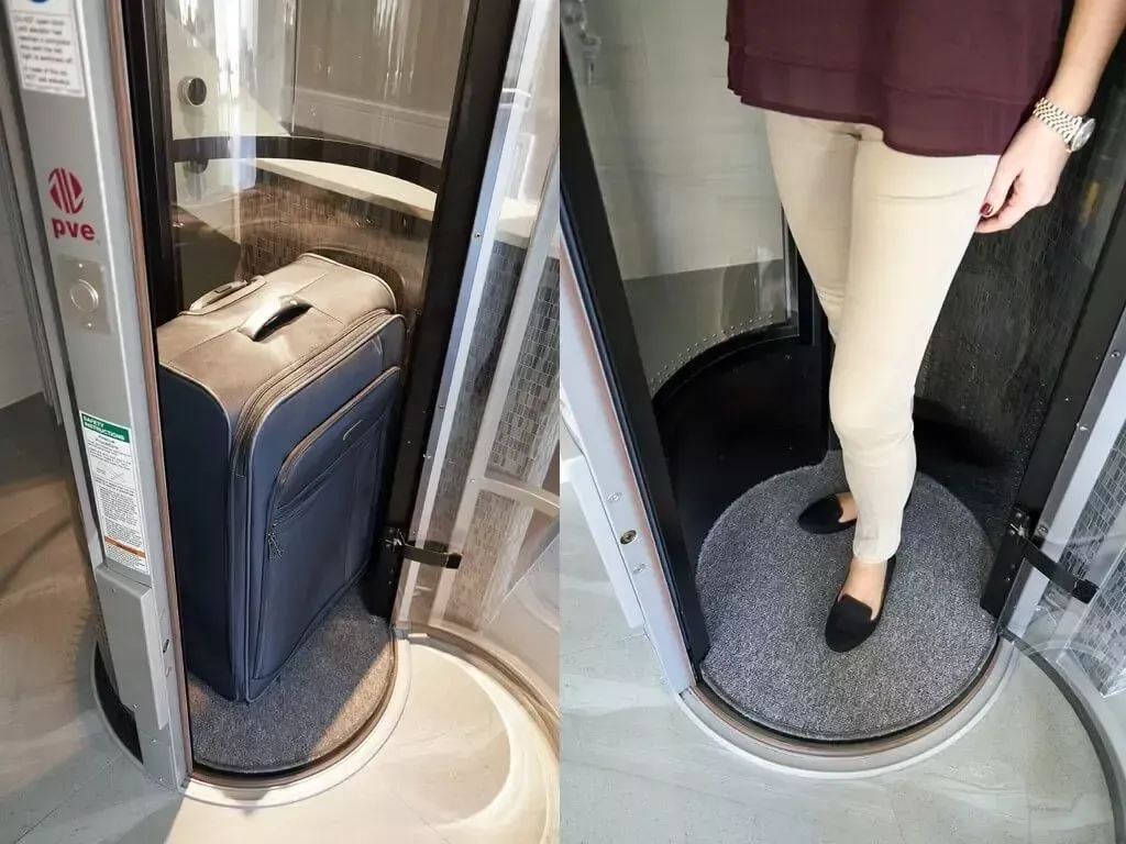 The unique design of the vacuum residential elevator is a perfect choice for any retrofit or new construction project and will enhance the value of your home without the larger footprint of a traditional home elevator. The PVE 30 is the smallest footprint of any home elevator!