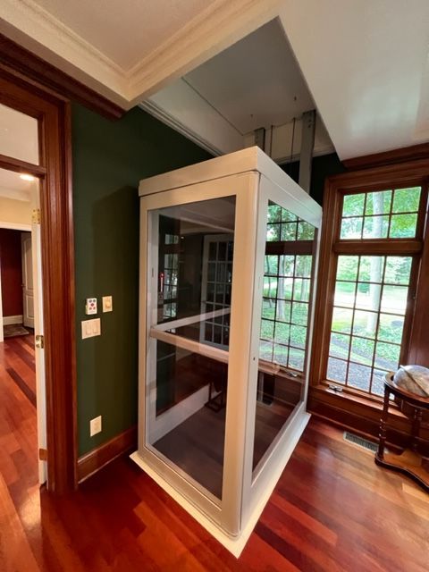 The Connect is a free-standing home elevator that can be installed nearly anywhere in your home thanks to an independent rail system. Bedroom, kitchen, dining room, closet - can be installed almost anywhere in the home! While Connect home elevators do not need to be attached to a wall to operate. The Connect comes in three different sizes. Choose the Connect model that matches your individual needs and space: Compact, Classic or XL. Whether one or two people need to travel in the elevator at a time, we have a solution. Take your laundry or pet along for the ride, too!