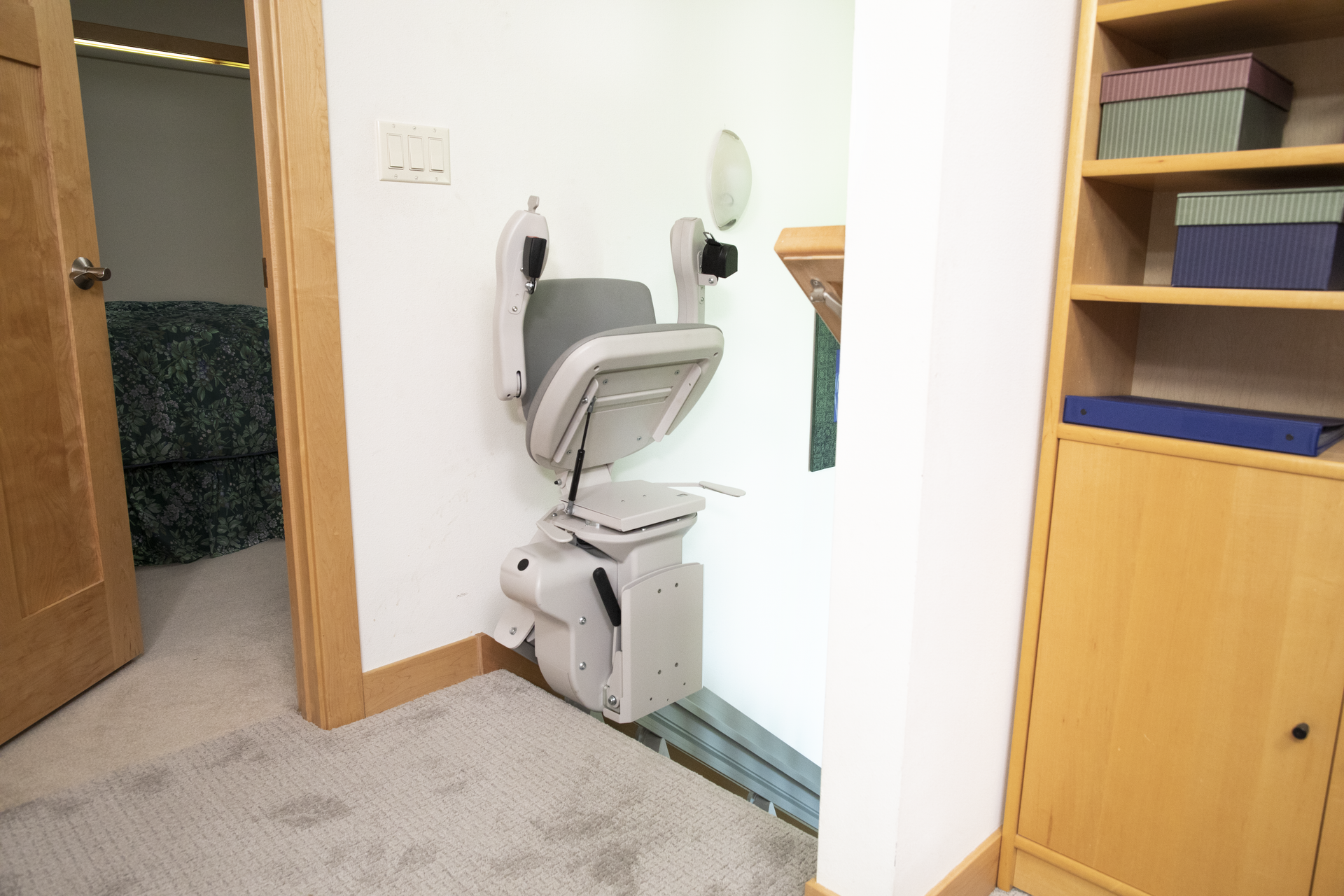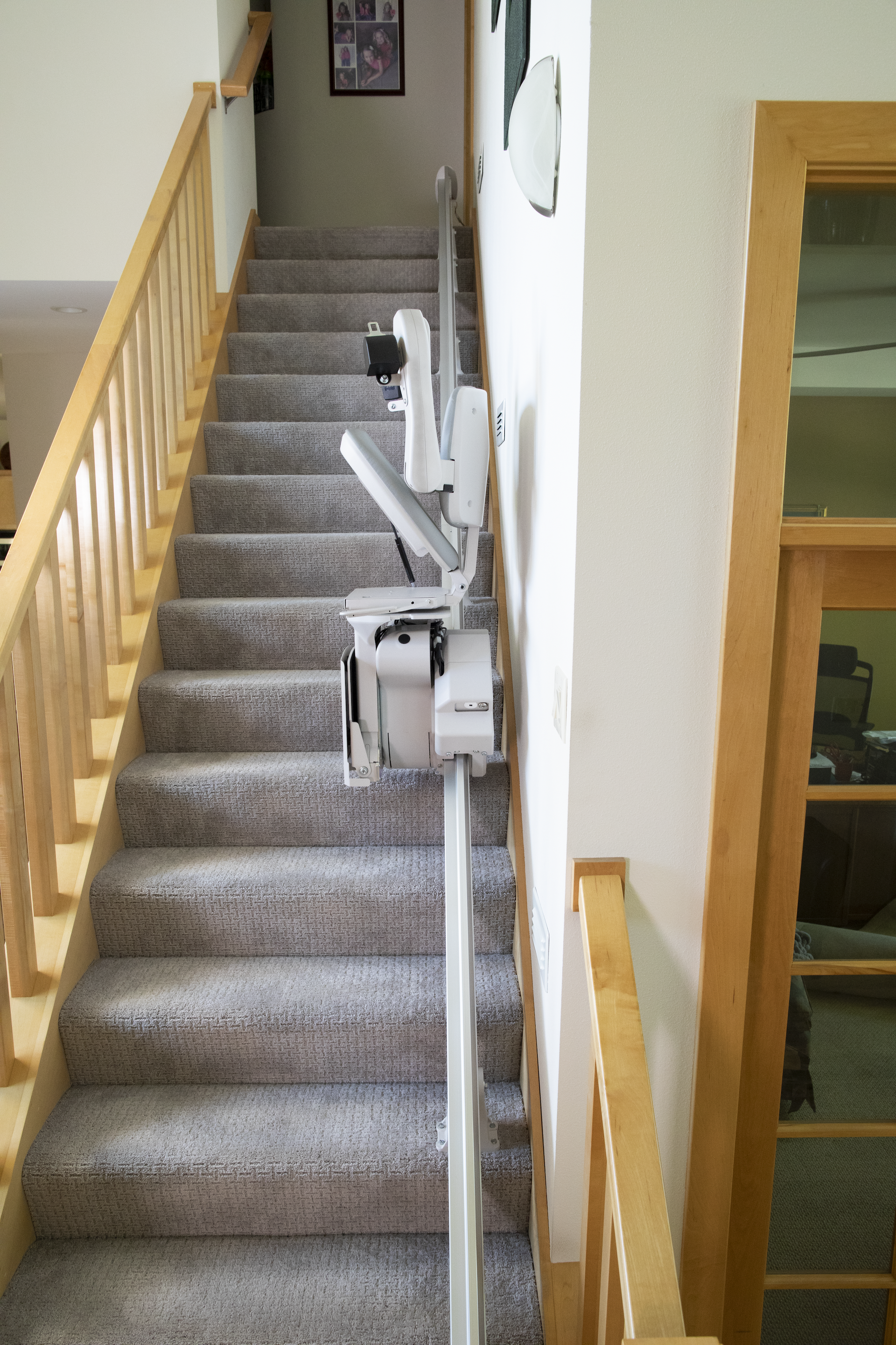 - Power or manual folding rails- For narrow hallway or when doorway is at bottom of stairs. Manual operation or push-button automatic.